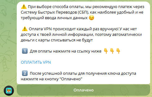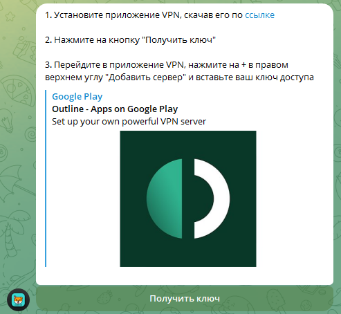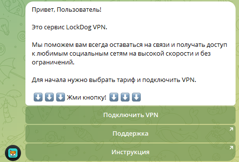 1) После запуска бота нажать на кнопку "Подключить VPN".